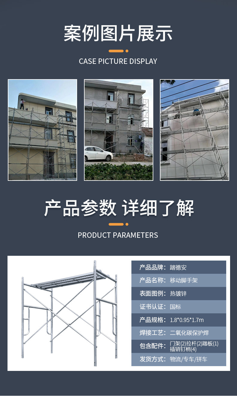 門式雙層腳手架結構簡單,移動方便,上下兩層可以站人和放置施工工具,增大了工人在施工中的性,并且腳手架下面還可以輕松過人,爲施工